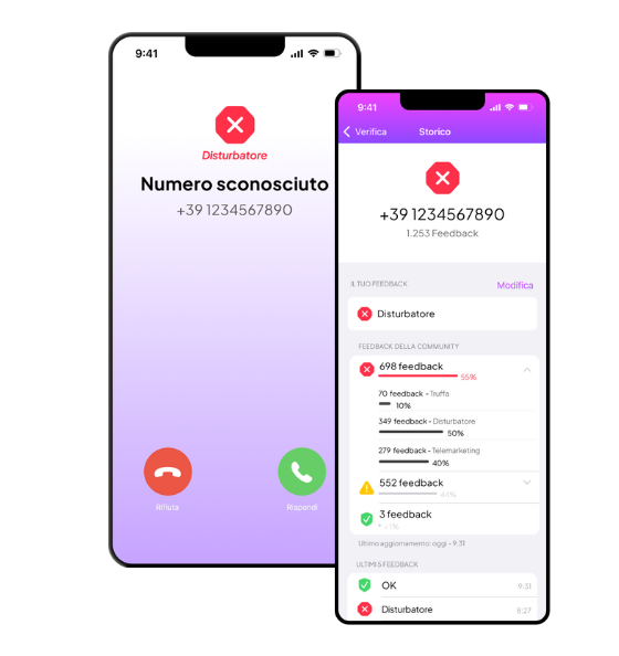 - Visualizza il tuo feedback e l'aggregato di quelli inseriti dalla community alla ricezione di una chiamata