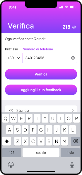 - Verifica un numero qualsiasi tramite l'acquisto di crediti